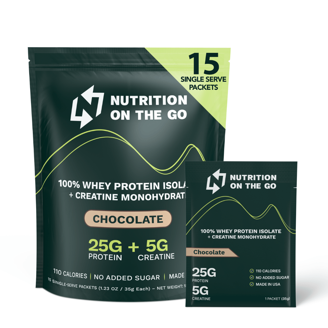 But when you’re traveling, working late, or just not near your kitchen, sticking to your protein and creatine routine gets messy—scoops, tubs, missed doses… it adds up.